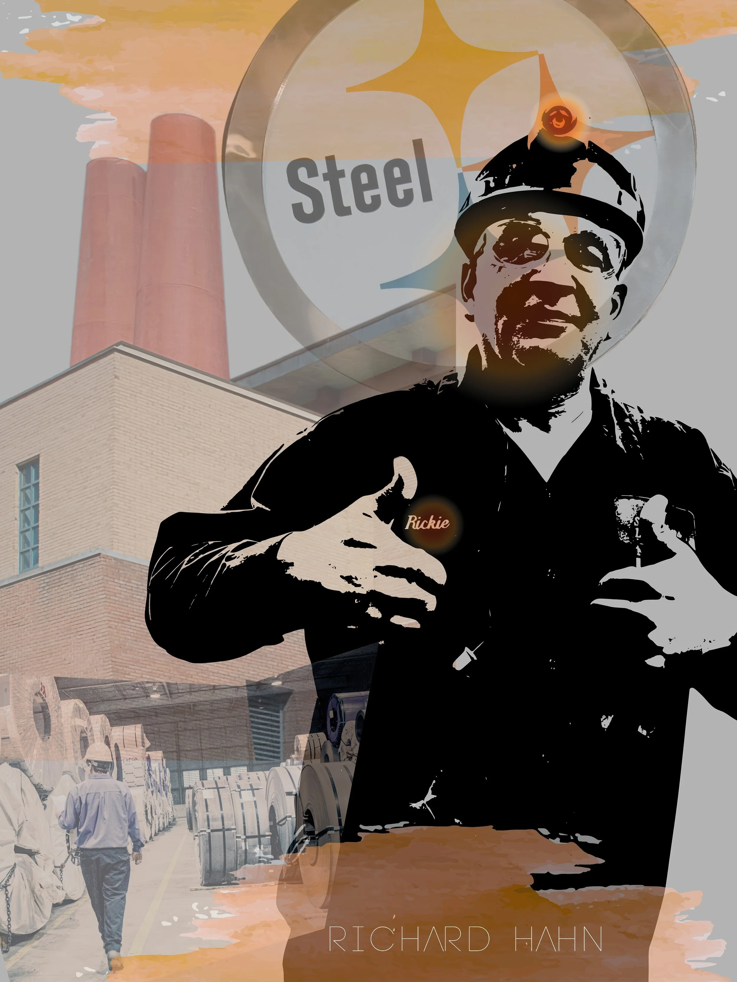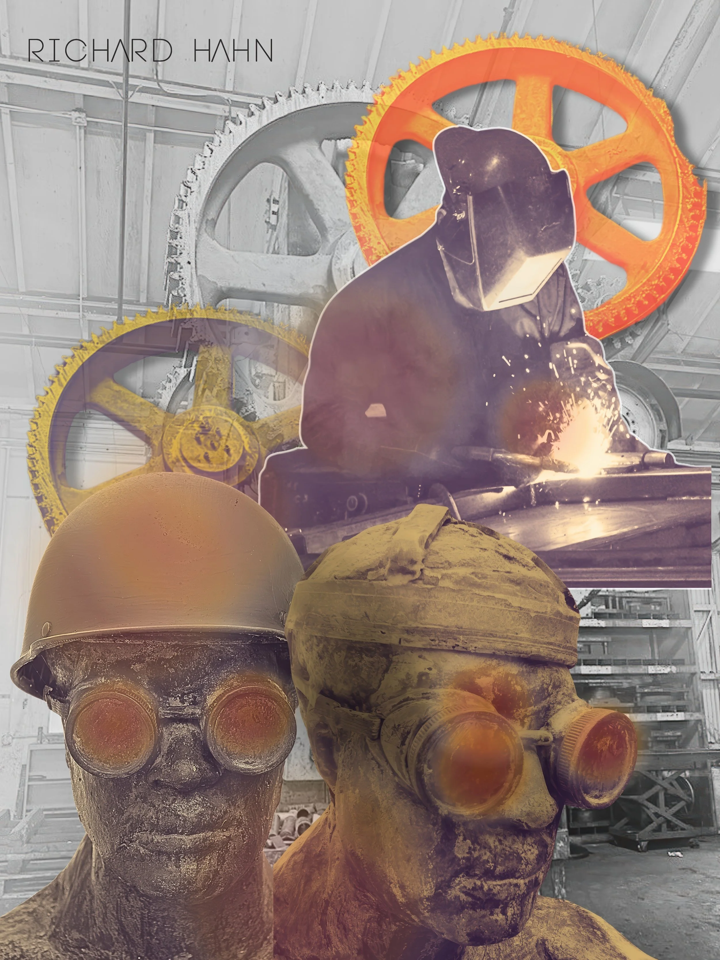 All the photographs featured in my collages are my own, many taken while working in local factories for clients for whom I created marketing materials and films. The historical images and artifacts were captured at the Youngstown Historical Center of Industry & Labor.