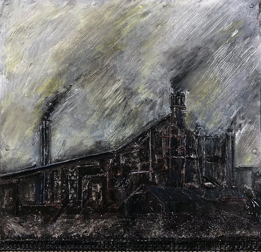 Blast Furnace C-5 Cleveland, 2018, Mixed media on sheet metal, 9.5” x 8.75” x 0.75” Inspired by Viktor Macha