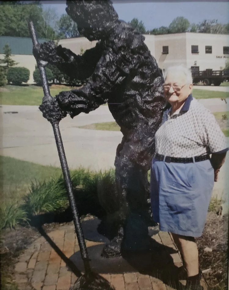 The sculptures were donated by the Rackoff Family, Three of them guard the entrance to YSUs Parking Lot of the Museum. They are thought to recognize the horrors of war. “We Could’ve Been Brothers” represents two soldiers locked into combat, one man fighting for ideology against his own brother fighting for the other side.