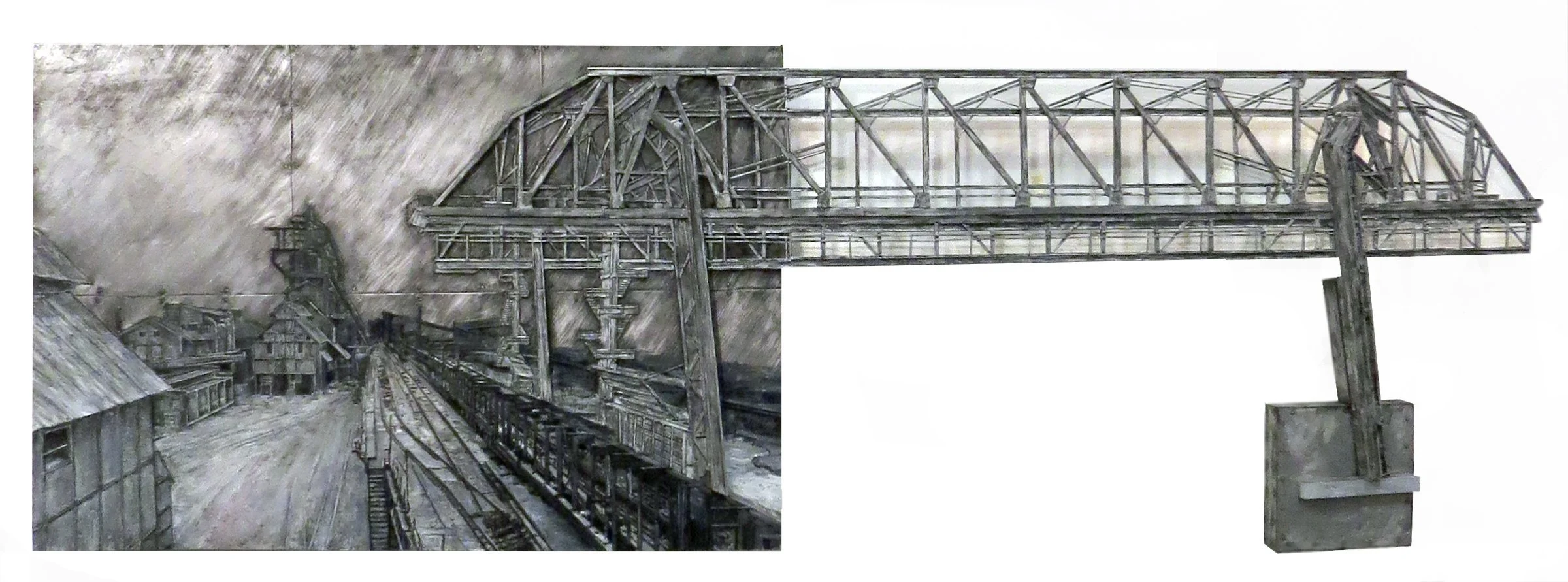 Lackawanna Ore Bridge, 2015. Encaustic, cement, wood, paint on sheet metal, 24” x 76” x 3”